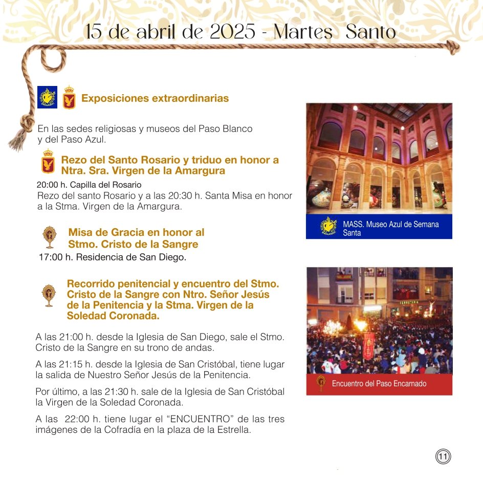 Horarios e Itinerarios Martes Santo Lorca 2025